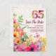 Set the tone for your milestone celebration with this elegant 65th birthday save the date card. Featuring a soft linen background with a vibrant floral “65,” this customisable design is perfect for sharing the details of your upcoming party with family and friends. Enjoy!