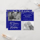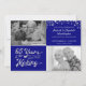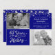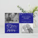 Sapphire blue and silver glitter 65th wedding anniversary party invitation featuring a retro typography title stating 65 YEARS IN THE MAKING which integrates their wedding year within the design and including two photos (perhaps then and now pictures). The back side includes additional invitation information. PHOTO TIP: For fastest/best results, choose a photo with the subject in the middle and/or pre-crop it to a similar shape as shown BEFORE uploading and it will fill the photo space perfectly. Contact the designer via Zazzle Chat or makeitaboutyoustore@gmail.com if you'd like this design modified, on another product or would like coordinating items.