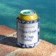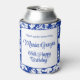 65th Birthday Chic Blue White Floral Can Cooler