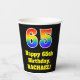 This colourful and fun birthday-themed paper cup design features a large number “65” having a rainbow spectrum gradient inspired pattern. It also features the message “Happy 65th Birthday,”, and a custom name. It also has a black-coloured background. Colourful, vibrant paper cups like this might be fun to have at a birthday party being held to honour somebody’s 65th birthday. [~Z0000537]