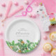 Perfect table decor for a December birthday party. Holly is the birth flower for that month. It forms a pretty watercolor bottom border on this festive personalised round paper plate. The birthday celebrant's name, age and birthdate are placed above it using elegant calligraphy and typography. All text is editable.