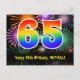 65th Birthday – Fun Fireworks Pattern + Rainbow 65 Postcard
