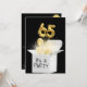 Gold balloons with sparkles and ribbons in a white box on black background for 65th birthday party.