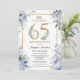 65th Birthday Party Elegant Dusty Blue Floral Invitation