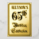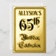 The front of this luxurious sixty-fifth birthday celebration/party foil invitation card design features the message “65th Birthday Celebration” in elegant script-style text. It also features a custom name. The back features personalised details about the event, such as the date, time, location/venue, and any other important information. Fancy, ornate, customised invitations like these might be used to invite guests to a birthday party/celebration being held to celebrate somebody’s 65th birthday. [~Z0000596]