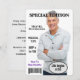 65th birthday party invitation with a magazine template to personalise with your birthday person's photo.