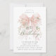 65th Birthday Party Pink Coquette Bow Rose Floral Invitation