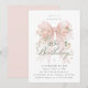 A large blush pink coquette bow is decorated with elegant pink roses on this birthday invitation. Classic script calligraphy lets your guests know it's a milestone birthday. Easy to personalize with your party details.