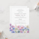 Elegant watercolor asters create a floral border at the bottom of this birthday invitation. The soft pastel purple, pink blue and white flowers are the September birthday month flower making this the perfect theme for your September birthday.