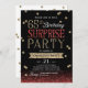 This chic and stylish 65th Birthday Surprise Party invitation features an elegant faux rose gold and red glitter confetti theme with modern typography.