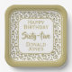 This unique numeric design features a gold and white random number pattern with the milestone number 65 displayed in various sizes and angles. A white rounded square serves as the centre for your text, surrounded by a gold and white frame.