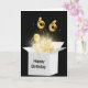 Gold balloons and sparkling light beams glow in a white box on black background for 66th birthday