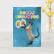 A playful siamese cat chasing balloons. A great way for a cat lover to send a birthday card.