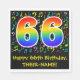 This fun, colourful, and vibrant birthday-themed paper napkin design features a large number "66" having a rainbow spectrum gradient inspired pattern. It also features the message "Happy 66th Birthday,", and an editable name. Part of the background has a colourful music notes and symbols pattern. Fun, personalised birthday themed paper napkins like this might be used at a musician’s, a singer’s, a composer’s, or somebody else’s 66th birthday celebration. [~Z0000421]