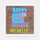 This fun birthday themed paper napkin design features the message “HAPPY 66TH BIRTHDAY,” having a colourful, vibrant, graffiti and urban street art inspired appearance, along with an editable recipient name. The background features a pattern inspired by the look of a brick wall. Paper napkins like this might be used at a party for somebody who is celebrating their 66th birthday. [~Z0000534]