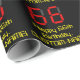 This nerdy and fun birthday-themed wrapping paper design features a large number "66" having a red seven segment digital display style look, along with the message "Happy 66th Birthday," and a customisable name in geeky yellow text, on a black coloured background. Wrapping paper like this might be used when giving a gift or present in honour of somebody’s 66th birthday. [~Z0000387]