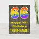 66th Birthday: Rustic Faux Wood Look, Rainbow "66" Card
