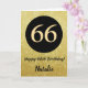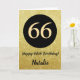 66th Happy Birthday Black and Gold Glitter Card with personalised name. For further customisation, please click the "Customise it" button and use our design tool to modify this template.