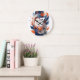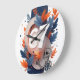 The image is a stylized digital illustration celebrating the number 67, possibly for a birthday or anniversary. The large, white, 3D numbers "67" are centrally placed and surrounded by a decorative, layered background of autumnal foliage. The color palette features deep navy blue and contrasting vibrant orange, with accents of dusty blue and white/cream. In the bottom right corner, a cheerful, cartoon-style skeleton is giving a 'thumbs up' gesture, adding a humorous, slightly quirky touch to the celebratory theme.