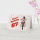 A girl riding a motorcycle with the wind blowing her hair. A great card for the man who loves his bikes!
