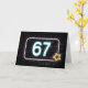 Glowing neon sign with a star on a dark brick city wall for 67th birthday.