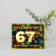 The front of this vibrant sixty-seventh birthday party/celebration foil invitation postcard design features a custom name, a large number “67th”, the message “BIRTHDAY PARTY!”, and a border. The background of the front has an upbeat, colourful bursting celebratory fireworks-inspired pattern. The back features personalised details about the event, such as the date, time, venue/location, and any other relevant information. Editable invitations like these might be a fun way to let guests know about a birthday gathering being held in celebration of somebody’s 67th birthday. [~Z0000609]