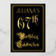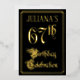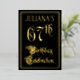 The front of this opulent, elegant, foil sixty-seventh birthday celebration/party invitation design features the message “67th Birthday Celebration” in ornate script-style text. It also features an editable name. The background of the front is coloured black by default (although it can be customised to a different colour). The back features personalised details about the event, such as the date, time, location, and any other relevant information. Ornate, fancy, customisable invitations like these might be used to invite guests to a birthday party being held in celebration of somebody’s sixty-seventh birthday. [~Z0000589]