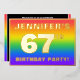 The front of this exciting sixty-seventh birthday party foil invitation card design features a custom name, a large number “67th”, the message “BIRTHDAY PARTY!”, and a border. The background of the front has a vibrant, colorful, rainbow spectrum inspired gradient pattern. The back features personalized details about the event, such as the date, time, venue/place, and any other relevant information. Editable invitations like these might be a fun way to invite attendees/guests to a birthday party being held to celebrate somebody’s 67th birthday. [~Z0000599]