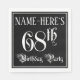 This ornate and fancy birthday-themed paper napkin design features a personalized name and the message “68th Birthday Party”. The large number “68th” and the words “Birthday Party” are in opulent script-style text. The background is colored black by default (although it can be customized). Luxurious, elegant paper napkins like this might be used at a birthday party being held to celebrate somebody’s sixty eighth birthday. [~Z0000563]
