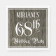 This elegant and ornate birthday party themed paper napkin design features a custom name and the message “68th Birthday Party”. The large number “68th” and the words “Birthday Party” are in fancy script-style text. The background features an imitation/faux woodgrain-inspired pattern. Luxurious, elaborate paper napkins like this might be useful at a birthday celebration/party being held in celebration of somebody’s 68th birthday. [~Z0000564]