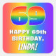 69th Birthday: Colourful, Fun Rainbow Pattern # 69 Square Sticker