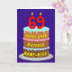 69th Birthday: Fun Cake and Candles + Custom Name Card