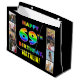 This bold and fun birthday themed gift bag design features the message “HAPPY 69TH BIRTHDAY,“ with a colourful rainbow spectrum inspired gradient pattern, along with a personalised recipient name. To the left and the right of the rainbow-patterned message on the front are some photos that can be personalised, perhaps with photos of the recipient, the recipient’s family and friends, and/or the sender(s) of the gift. A gift bag like this might be a fun way of wrapping a birthday present being given to somebody who is celebrating their sixty-ninth birthday. (Photography © Storytree Studios, Stanford, CA.) [~Z0000668]