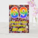 69th Birthday; Rustic Autumn Leaves; Rainbow "69" Card