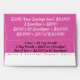 $6,000 Savings Goal Money Envelope -- designed to help those who earn $30k a year save the recommended amount of 20% which is $6,000! How it works: Order a minimum quantity of 10 envelopes and start saving $600 in each envelope to reach $6,000 in ten envelopes at the end of the year! Choose how to save money in each envelope: five deposits of $120, ten deposits of $60, or a mix of the two! Cross off $120 or $60 for each deposit you make in the envelope, and when a total of $600 is crossed out you reached your goal for the envelope! The back includes a breakdown of the yearly savings goal along with how often to save $600 in each envelope for 26 pay periods to stay on track all year long, plus a note section to write envelope deposit dates! A year from now you will wish you started today! Happy saving!