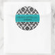 6 - 3" Black Damask Teal Turquoise Favour Stickers