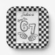 6 7 Meme Black White Checkerboard Birthday Paper Plate