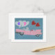 6 7 is in the clouds as this Poodle doggie is flying in the sky in a pink convertible classic car with heart balloons and roses in the back seat. A whimsical and fun card!