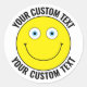 6 Custom Personalised Happy Face YELLOW, Blue Eyes Classic Round Sticker