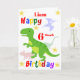 A fun 6 month birthday card! This bright birthday card features dinosaurs and some stars with a colourful Happy Birthday text. A cute design for a someone who will be half a year old. The child's name on the front of the card can be changed to customise it for the special baby boy. The message inside can also be amended to personalise it.