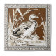 Minton Tile produced several series of similar bird tiles in the late 1870s through the 1880s. This one features a duck at the water's edge in neutral colors that go with every decorating color scheme.