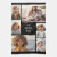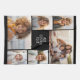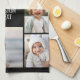 6 photos in an uneven pattern surround an opening for three lines of text. Use 2 square cropped photos and 4 vertical photos to make this work!