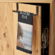 6 photo collage - black background - white text tea towel