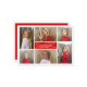 Vibrant crimson scarlet red background with a skinny white frame with six of your images, stylish and classy graduation announcement. Easily upload six of your favourite senior pictures or digital snapshots for an easy photo grad card. Quality, professional looking design with thin white frame and elegant fancy swirly script writing along with your custom details. This photomontage of the graduate (girl or boy) expresses true appreciation for the determination and accomplishment. All Designs Copyright © www.CustomInvitesOnline.com