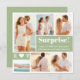 Everyone will love seeing your engagement photos. This 6-photo collage engagement announcement gives you a great opportunity to show them off. The two blush squares contain your text. All of the white text can be edited to create your unique spin. I added a playful Surprise! Then two lines of text in the large square in the smaller one I inserted your monograms separated by a heart.