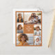 6 photos in an uneven pattern surround an opening for three lines of text. Use 2 square cropped photos and 4 vertical photos to make this work!