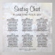 Make your wedding reception beautiful with this seating chart. Designed as a part of our White Reflections Wedding Suite, it features black text over a background of reflecting white flowers and hearts. This chart shows table assignments so your guests will have an easy time finding the right table.