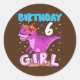 6 Years Old 6th Birthday Girl Dinosaur T Rex Classic Round Sticker
