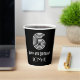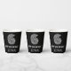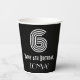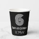 This 1920s/1930s style inspired and vintage style birthday themed paper cup design features a large art deco inspired look number “6”, along with the birthday greeting message “Happy 6th Birthday,” and a custom name. The background is coloured black. Birthday themed paper cups like this might be used at a birthday party celebrating somebody’s sixth birthday. [~Z0000542]