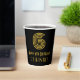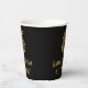 This Roaring Twenties inspired and vintage appearance birthday paper cup design features a large art deco inspired style number “6”, in addition to the birthday greeting message “Happy 6th Birthday,” and a customisable name. It also has a black-coloured background. Paper cups like this might be used at a birthday party for somebody who is celebrating their sixth birthday. [~Z0000546]